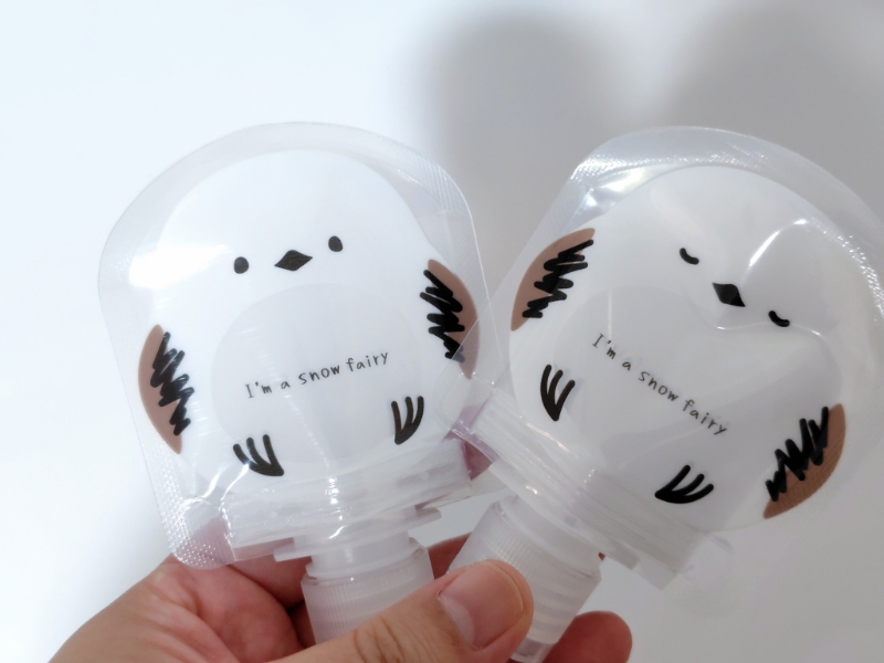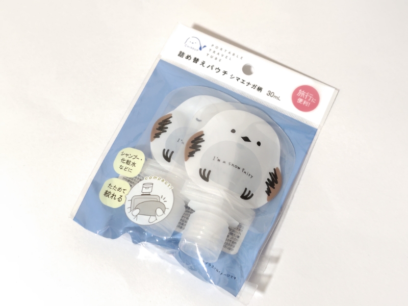 種類はいろいろあるのですが、ワタシは鳥さん模様(シマエナガっていうの?)のパウチを買い求めました。2個で110円です。