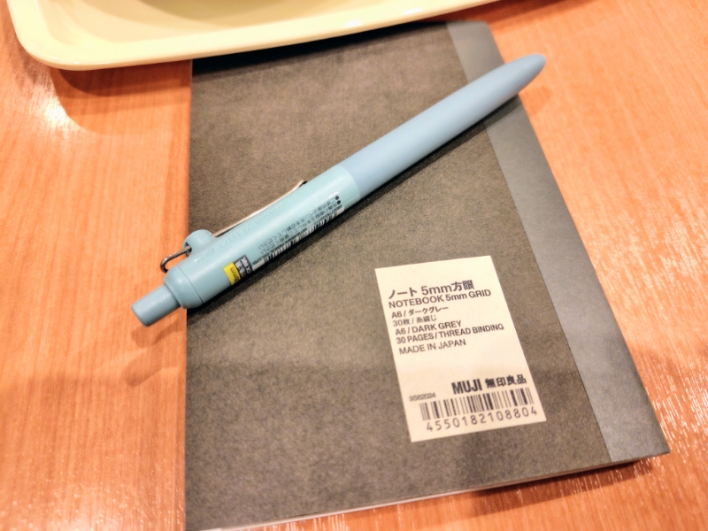 無印のA6ノートと新発売のユニボールの ZENTO というペンの0.38です。