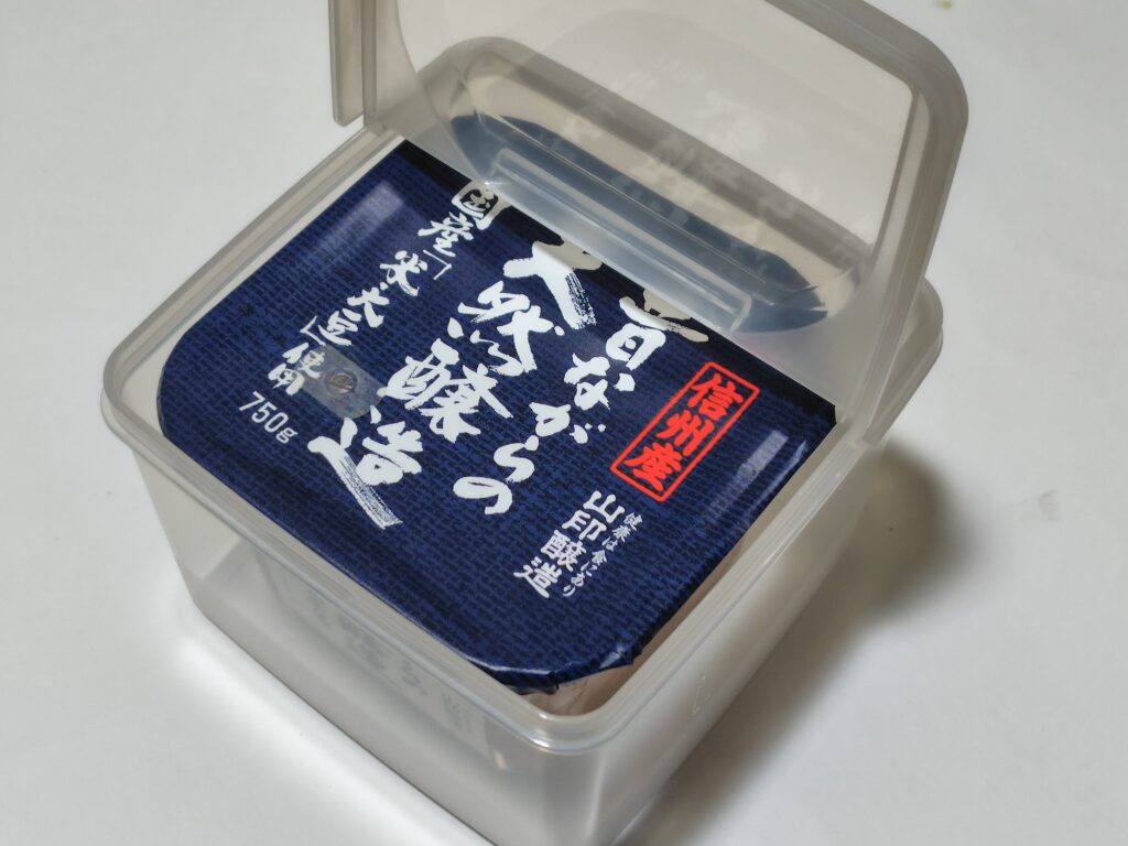 甘口の麦味噌。白菜とかカブなどの野菜味噌汁に良く合う。
