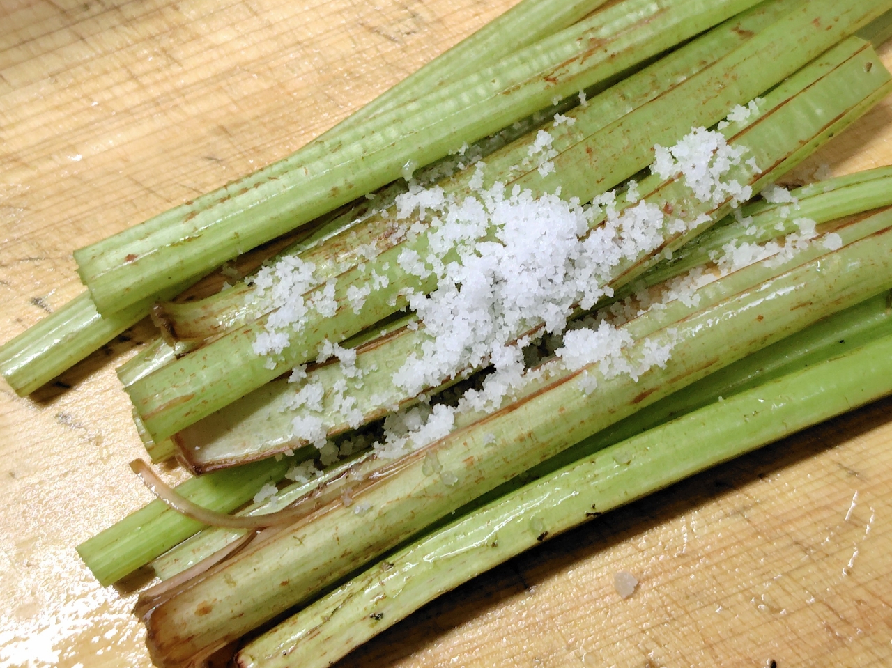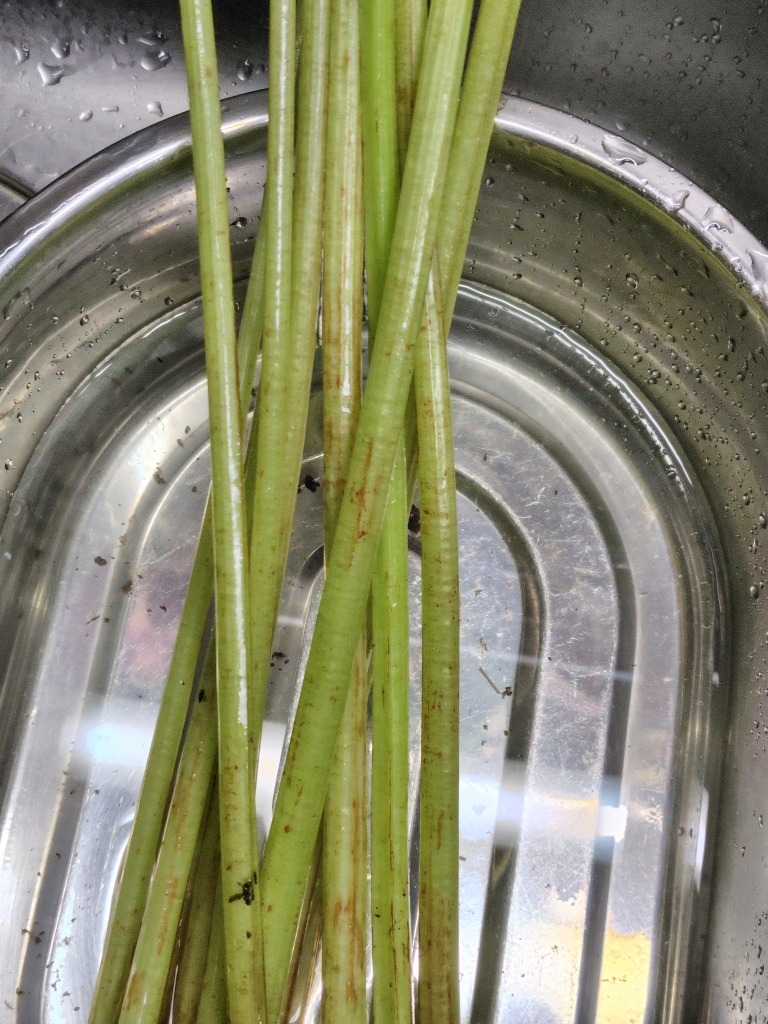 フキです。細めのものを使用。まずはよく洗います。