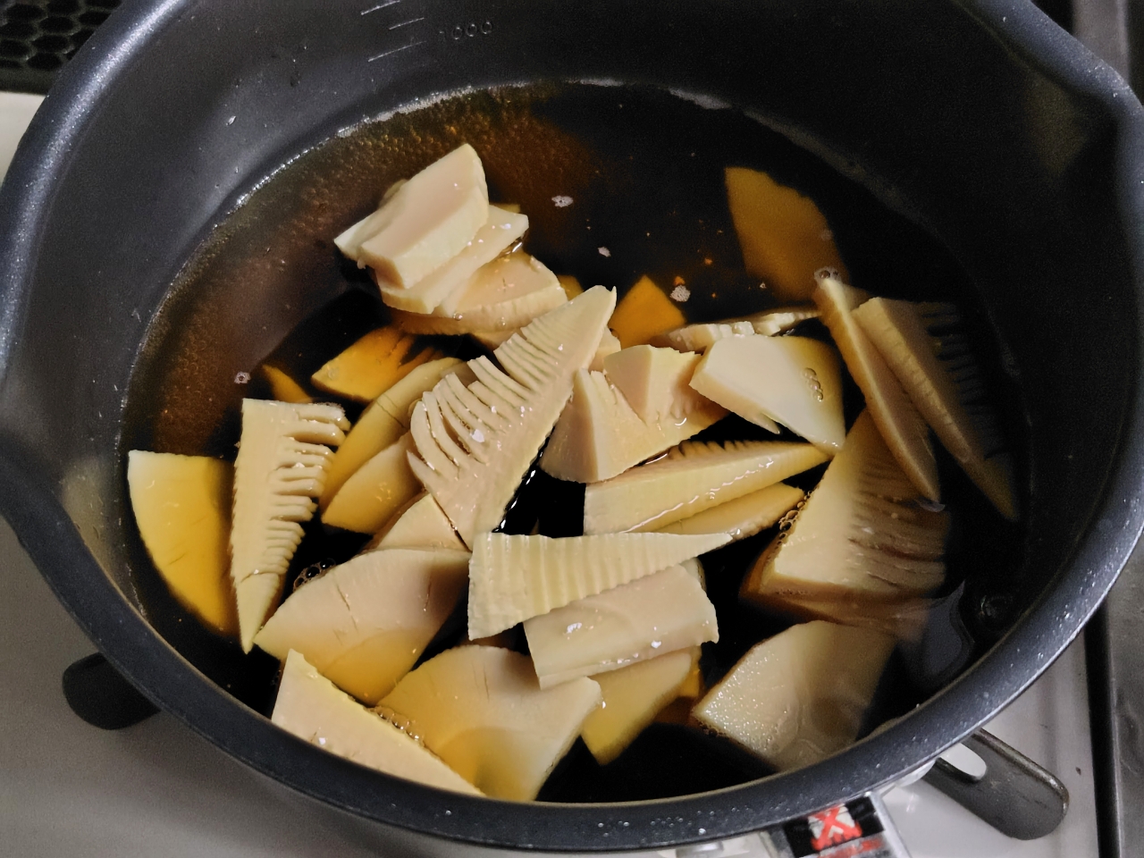 まずタケノコを入れて、7分ほど煮ます。