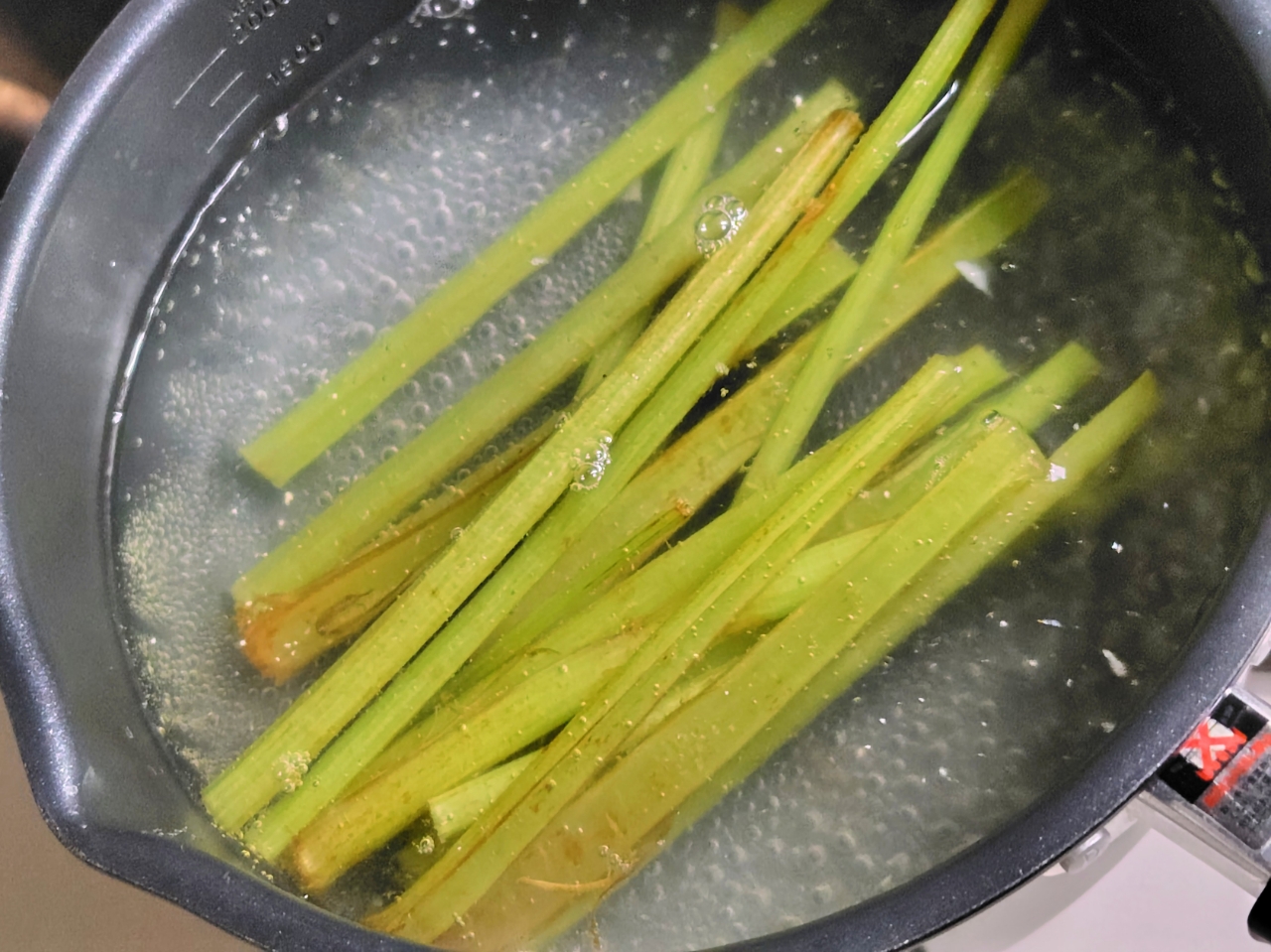 そのまま熱湯でさっと茹でます。