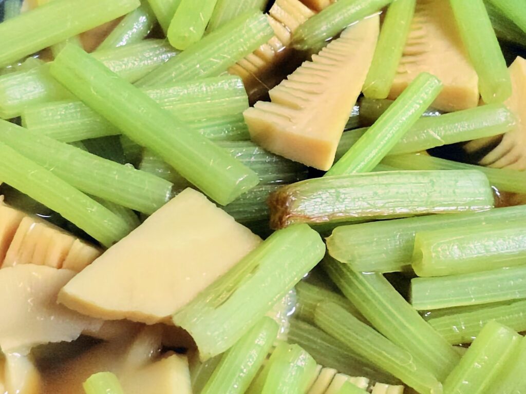 水煮タケノコを使えば、フキの煮物もぐっと手軽に作れます。