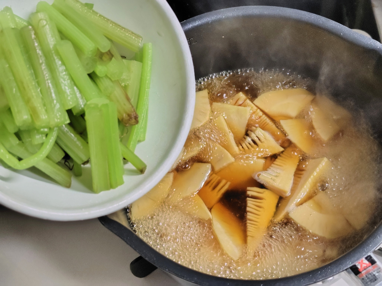 水煮タケノコは一度軽く下煮します。