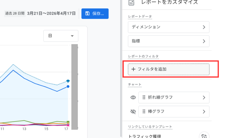 もしフィルタがかかっていない場合は、画面右上の「編集(鉛筆アイコン)」からフィルタを設定し直し、上書き保存してみてください。