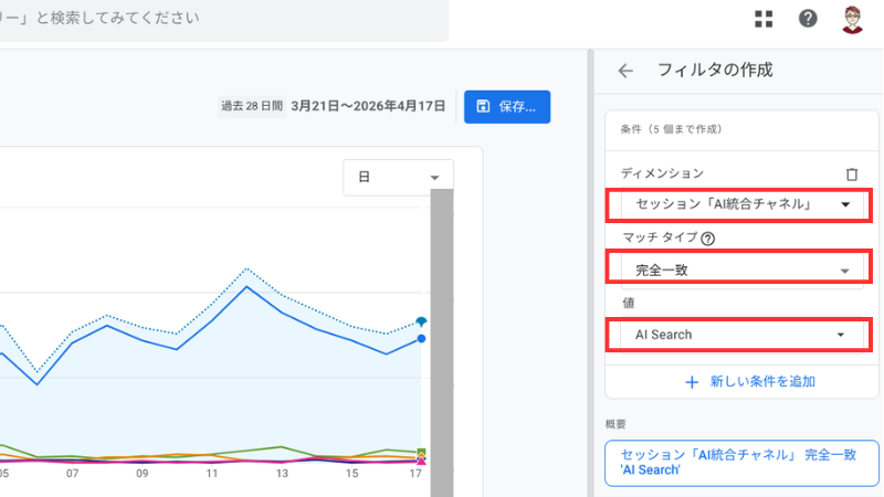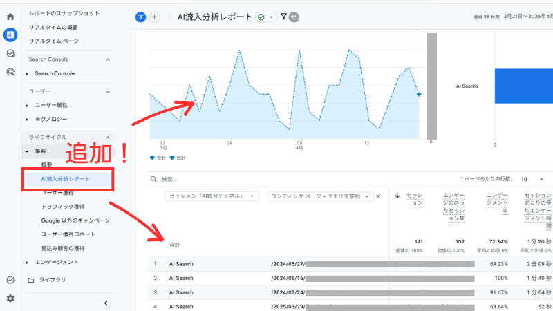 この記事では、実際に設定してみた手順とあわせて、クリック1つでAI流入だけを確認できる方法を解説します。